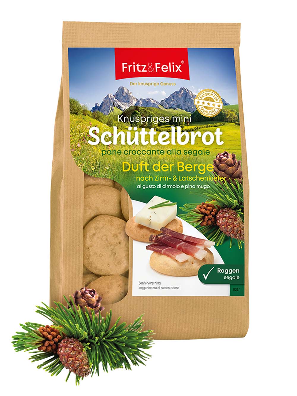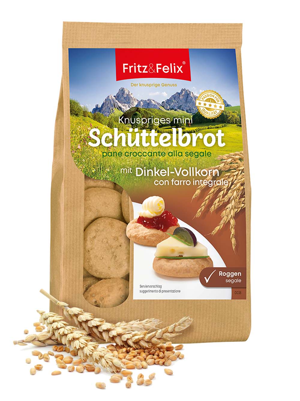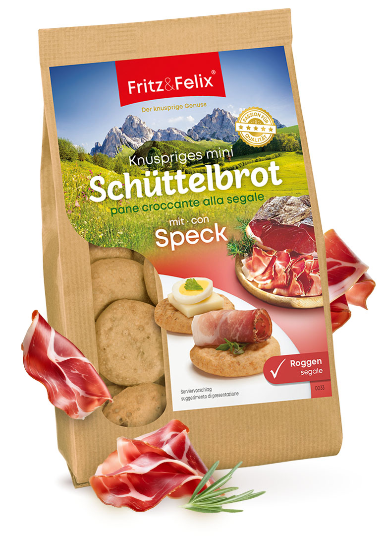Beim Mini Schüttelbrot Speck haben wir uns etwas Besonderes einfallen lassen: Bei einer typischen Südtiroler Marende wird meist Schüttelbrot und Speck aufgetischt. Hingegen bei unserem Produkt sind die fein geschnittenen Speckstücke schon im Schüttelbrot drinnen.