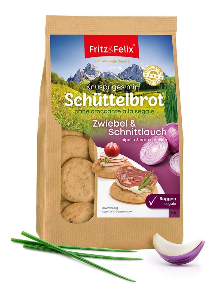 125 g Our Mini Schüttelbrot onions and chives are authentic and vitalising in taste. They once again underline our distinctive product philosophy: creative recipes with natural, healthy ingredients from traditional cuisine. Vegan Lactose-free authentic and revitalising only natural ingredients with roasted onion and fresh chives > 90% rye flour content no added fat packaged fresh […]
