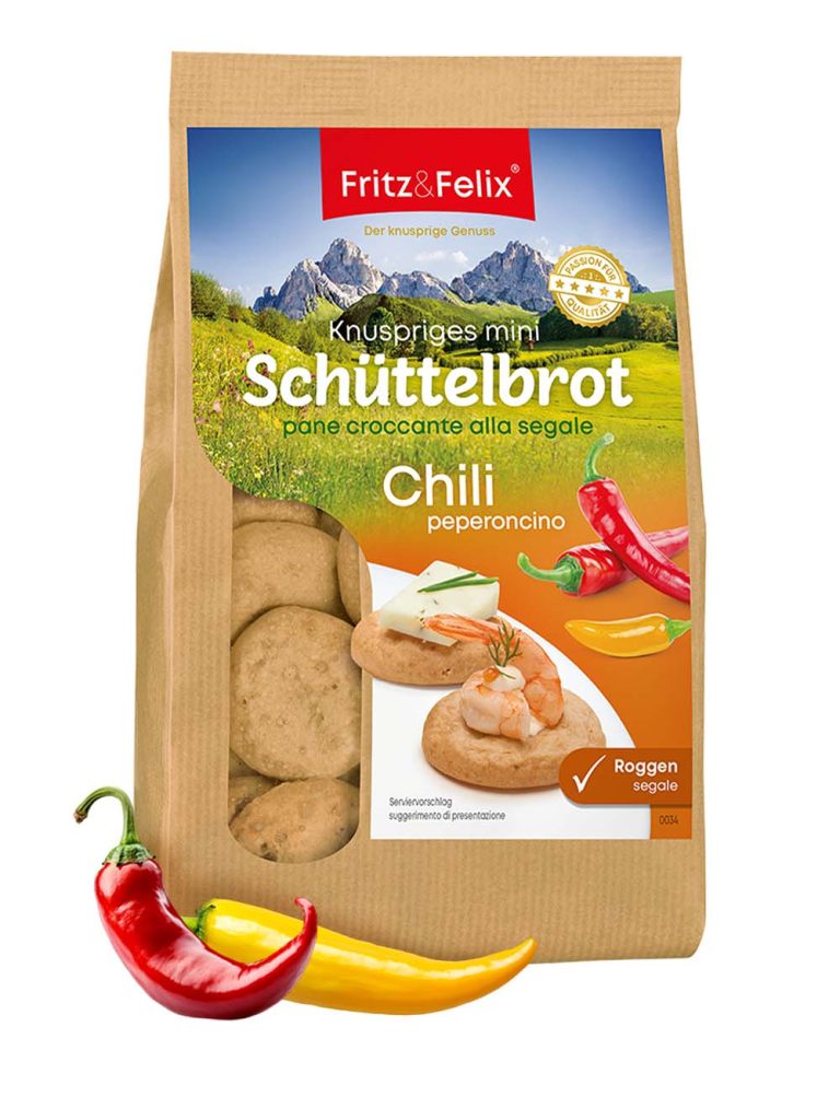 125 g Italy is and always will be the land of fiery love. You can also feel this passion when you bite into our Mini Schüttelbrote Chili. Vegan Lactose-free A new culinary perspective Tastes slightly nutty and aromatic only natural ingredients > 90% rye flour No added fat packaged fresh from the oven Other products […]