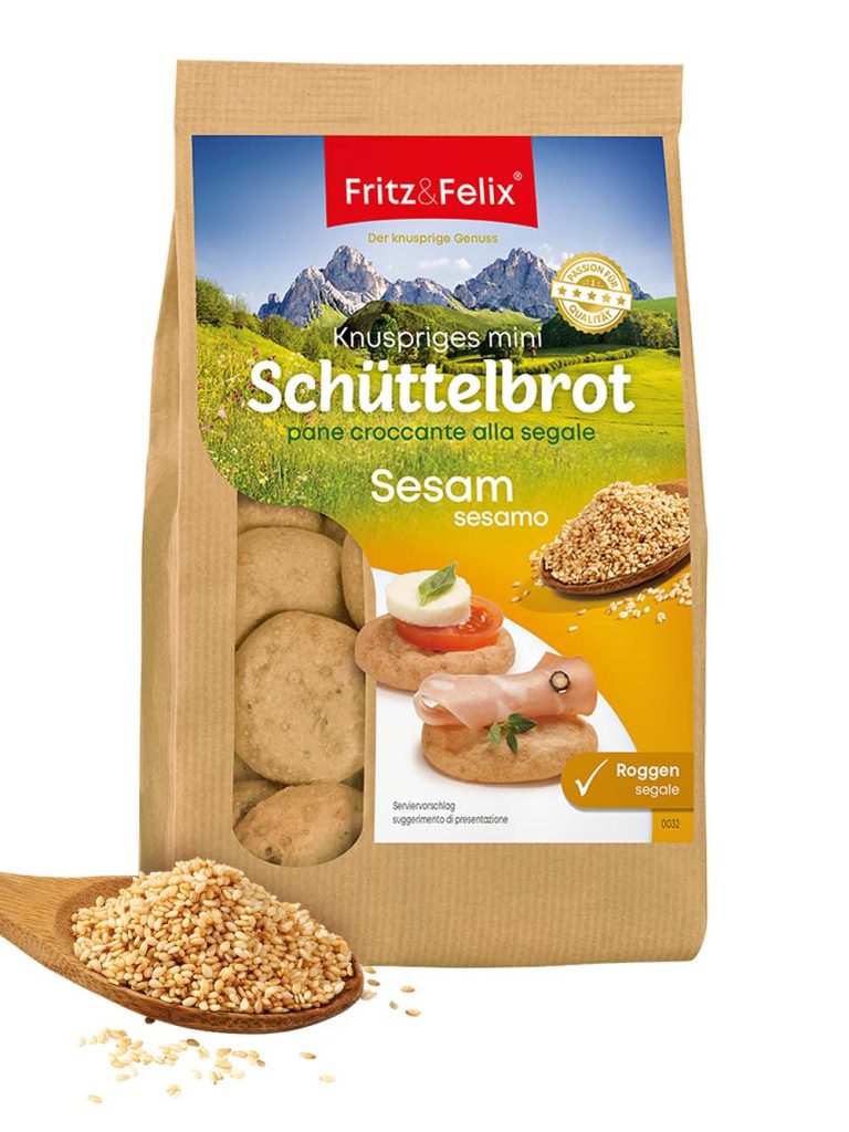 125 g The Mini Schüttelbrot with sesame is made with vitalising rye flour and hulled sesame seeds. This gives it that unmistakable nutty taste. Vegan Lactose-free with 12% hulled sesame seeds 85% rye flour Only natural ingredients unmistakable nutty taste packaged fresh from the oven Other products from the Mini Schüttelbrot line The smell of […]