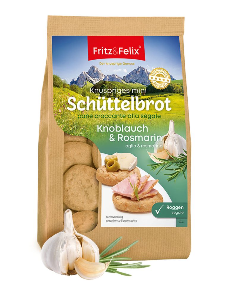 125 g Garlic and rosemary are important ingredients in Italian kitchens. With the Mini Schüttelbrot Garlic & Rosemary, we are building a bridge between South Tyrolean tradition and Mediterranean, Italian flair. Vegan Lactose-free South Tyrolean tradition meets Mediterranean, Italian flair unique taste experience Made with only natural ingredients. > 90% rye flour no added fat […]